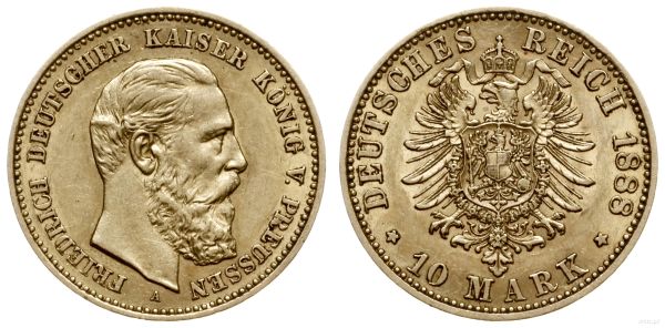 10 marek niemieckich Wilhelm IIzłota moneta z wizerunkiem cesarzy niemieckich i króla Prus, Wilhelma I, Friedrich III oraz Wilhelma II, bita w latach 1872-1914r. | Próba 900 | Waga3.98 g | Cena skupuskup2 106 PLN | Cena sprzedażysprzedaż2 253 PLN |
