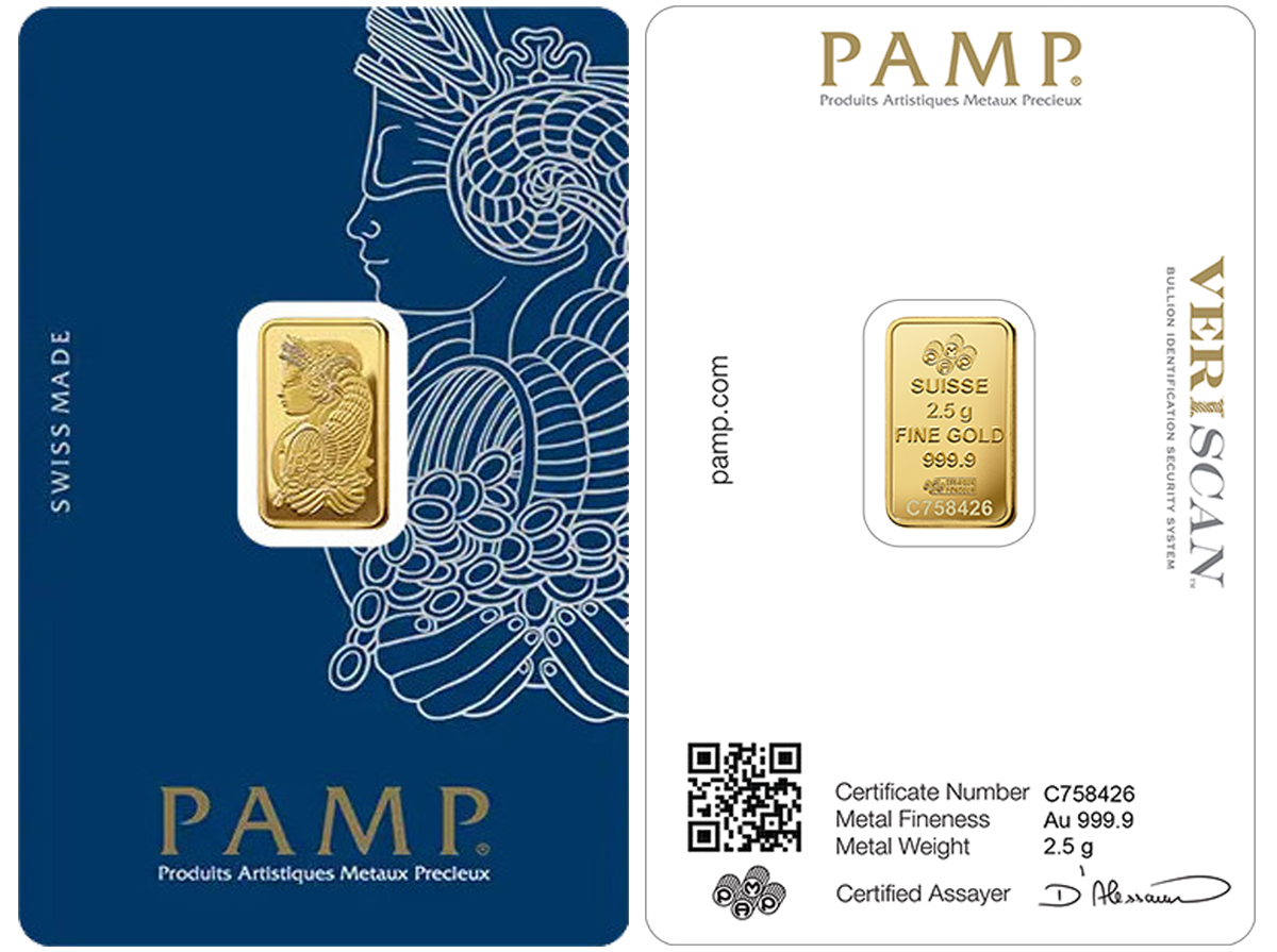 Sztabka złota Valcambi 2,5g Nowasztabki z czystego złota pr.999,9 szwajcarskich mennic Valcambi, Argor, Heraeus, PAMP gwarantujących najwyższe standardy jakości i czystości złota, akredytacja LBMA. Dostępne!! | Próba 999.9 | Waga2.5 g | Cena skupuskup1 376 PLN | Cena sprzedażysprzedaż1 462 PLN |